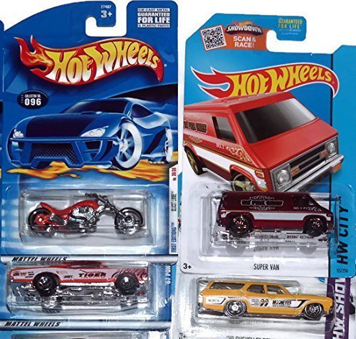-. Binding : Toy -. Brand : Hot Wheels -. EAN : 0717029892423 -. Feature : 4 Brand new factory sealed Hot Wheels cars / 4 different cars from 4 different years / Cars range from years 1998-2016 / You will receive 4 assorted cars from various years picture is an example of cars you may recieve -. IsAdultProduct : 0 -. Label : Hot Wheels -. Manufacturer : Hot Wheels -. MPN : na -. PackageQuantity : 1 -. PartNumber : na -. ProductGroup : Toy -. ProductTypeName : TOYS_AND_GAMES -. Publisher : Hot Wheels -. Studio : Hot Wheels -. Title : Hot Wheels, Die Cast Car 4 Pack Variety Bundle, 4 Different Cars From 4 Different Years Ranging from 1998-2015. 2 hotwheel cars from older years, and 2 hotwheel cars from newer years -. UPC : 797142292553