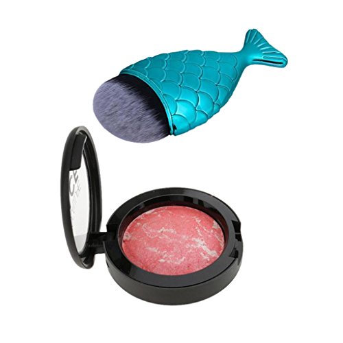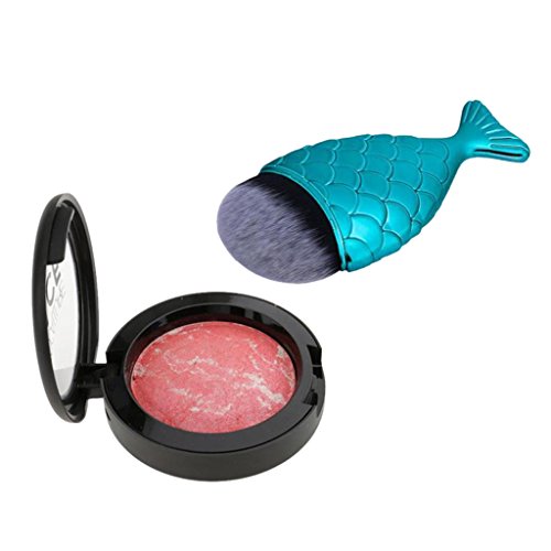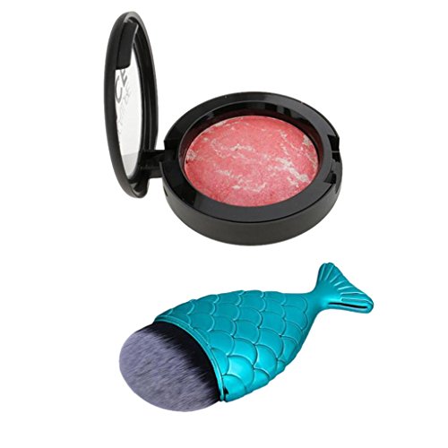 -. Title : MagiDeal Makeup Blusher Palette Long Lasting Powder Face Blush + Mermaid Glitter Fish Scale Cosmetic Powder Brush Blue