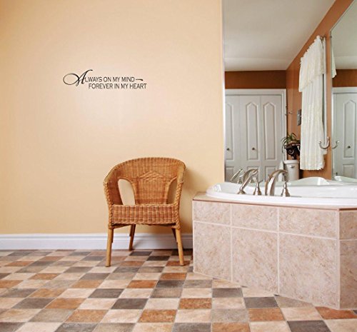 Design with Vinyl Moti 2153 1 Decal - Peel & Stick Wall Sticker : Always on My Mind Forever In My Heart Lettering Quote Living Room Color: Black Size : 6"es x 24"es