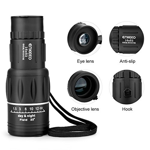 16X52 MAGNIFICATION: see things 16X closer and get clearer and brighter range of view with 52mm lens; this powerful hand held monocular provides the most pleasant and clear view