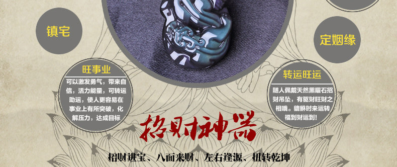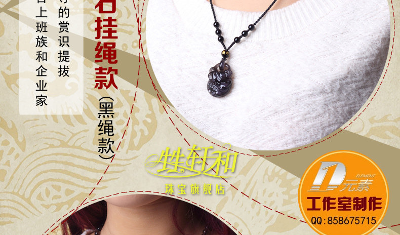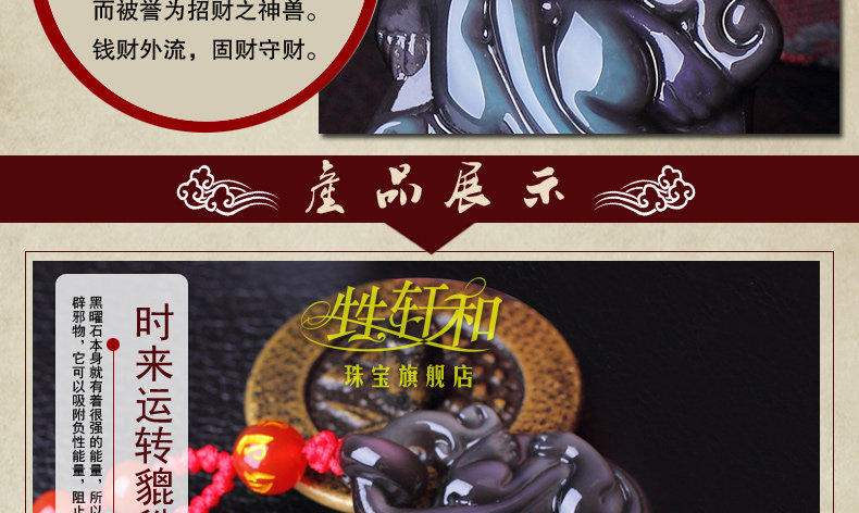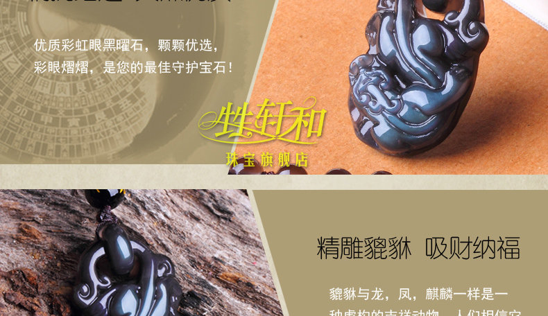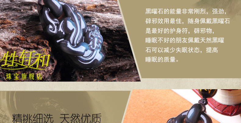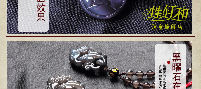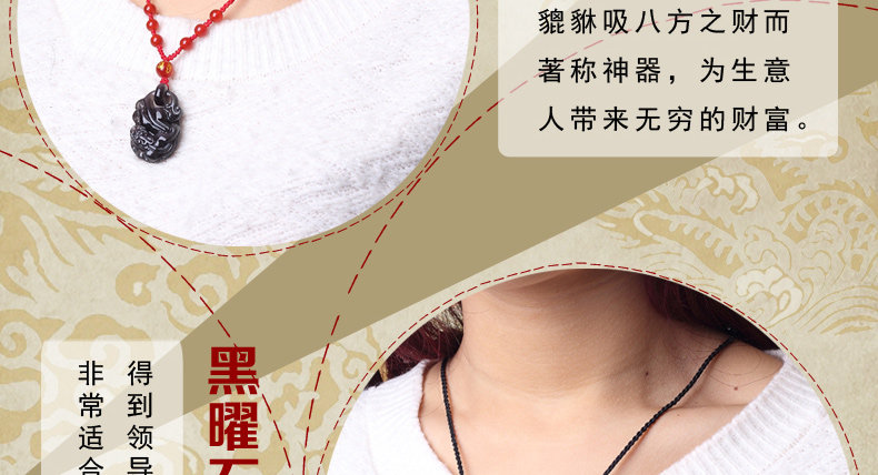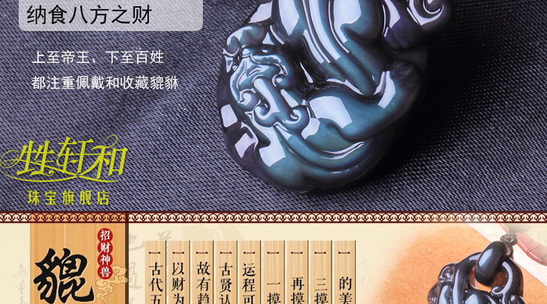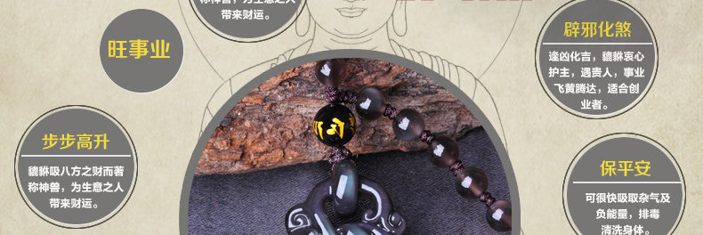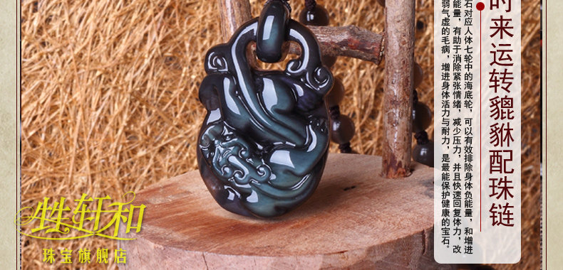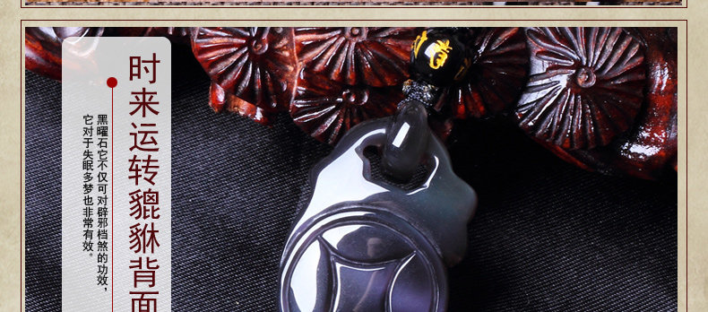 开光天然冰种黑曜石貔貅吊坠 招财转运男女款水晶饰品礼物