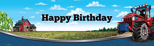 -. Title : Farm Tractor Party Supplies - Vinyl Birthday Banner 18" x 61"
