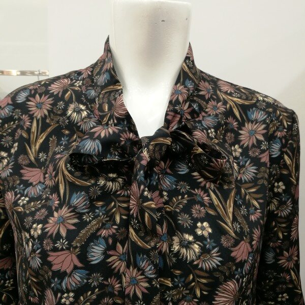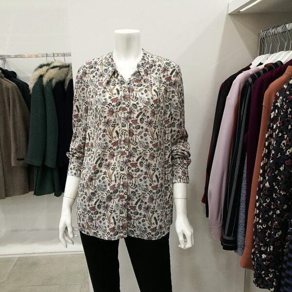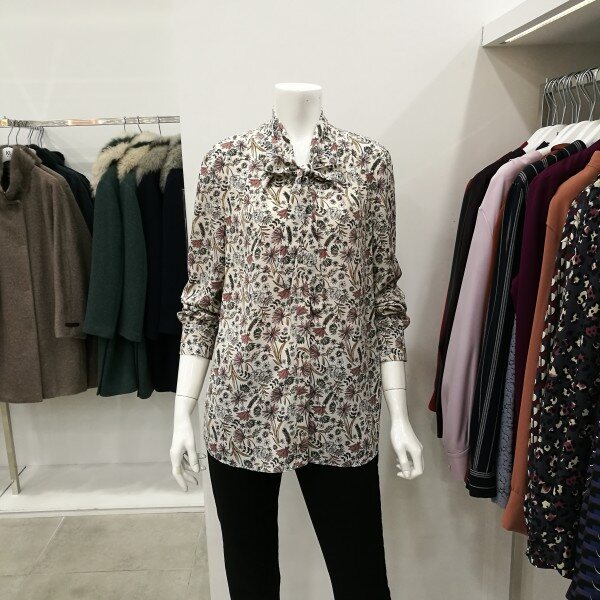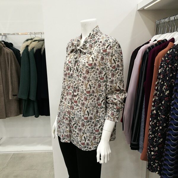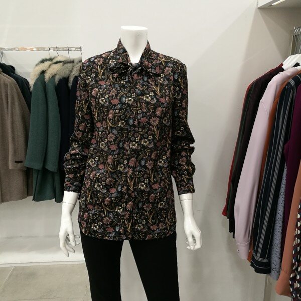 드라이플라워느낌의 디자인으로 고급스럽게 나왔으며 목에 리본은 했다 안했다 할 수 있고 무니가 있어 하의를 단색으로 코디하면 정말 세련되었다.