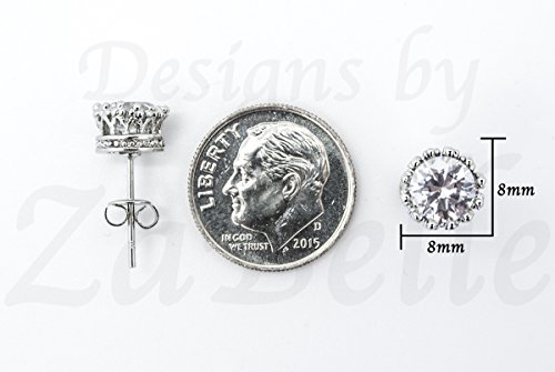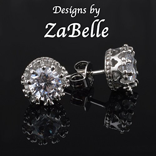 Designs by ZaBelle proudly introduces the new Royal Stud Diamond (CZ) Stud Earrings. These are the perfect earrings for you or that special someone in your life. Featuring eye catching 2 Carat Cubic Zirconia Gems, these earrings are sure to light up the room. Our high quality materials are elegant, great for fashion and your skin. All materials are free of Lead, Nickel, and Cadmium... and allergen free! With a total gem size is 8mm each, treat yourself or your lucky lady with a pair Royal Stud Earrings from Designs by ZaBelle.Feature
