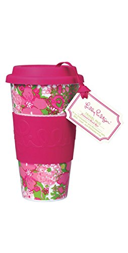 Lilly Pulitzer Travel Mug, Beach Rose - Kitchen Drinkware Cup Glass 143001-LGPLP