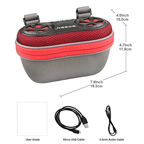 ECEEN Wireless Bluetooth Speaker - Bicycle Speaker Case with Hands-Free Speakerphone Calls and Rechargeable 4,000mAh Power Bank Charge For iPods, Cell Phones, Android Devices and MP3 Players (Red)