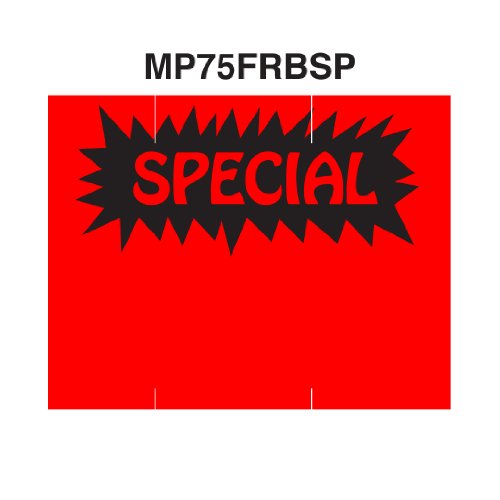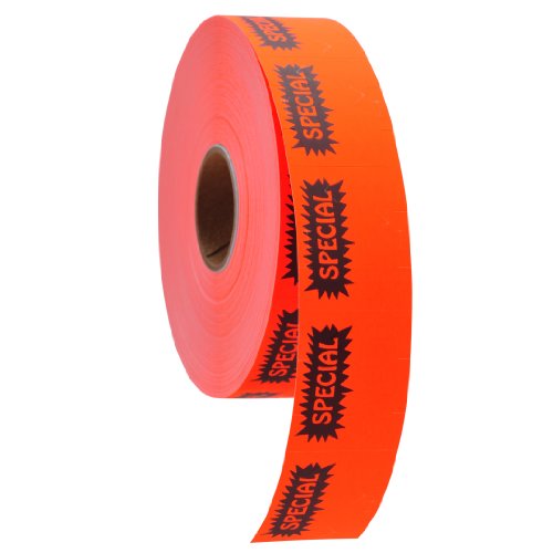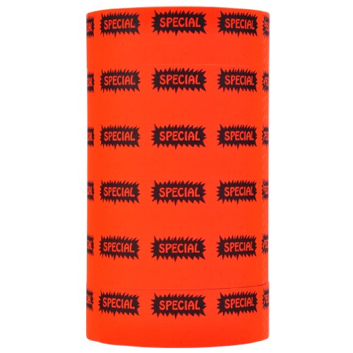 Black Reverse Starburst Print on Fluorescent Red "SPECIAL" Pricing Labels to fit Monarch 1151 1152 1153 1175 1176 and 1177 Pricers. 6 Rolls with 1 Free Ink Roller.