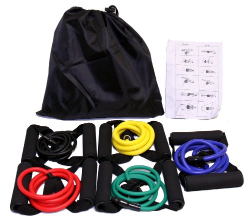Five individual resistance band set. Made with the highest quality of synthetic rubber to for maximum life