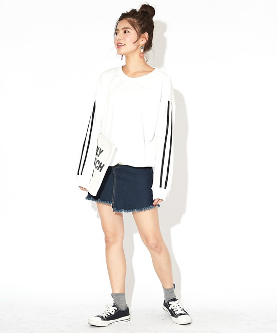 2本のラインがアクセントになり、シンプルながらもオシャレに着こなせるアイテム!