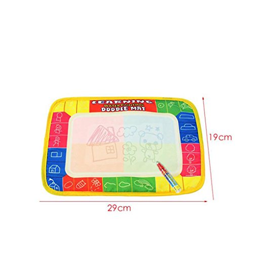 Studio : M-Egal Publisher : M-Egal Binding : Kitchen Product Description Description The drawing blanket is desinged as educational toys for kids intelligence development, interests cultivation, hands-on ability. White bottom with colorful painting area, as well as patterns edge, can attract kids attentions to draw or copy the patterns. About 10 minites drawing later, the painting will disappear, can repeatedly use. Fill the magic pen with water and draw on the magic mat, suitable for travel or indoor. Made of non-woven and water canvas with high quality, lightweight, tough and durable. Environmental protection, no ink, no paint, simple and convenient. Good present for your kids or your friends kids. Color: show as pictures. Size: 29*19cm. Material: non-woven, water canvas. Package included 1* water canvas blanket. 1* large water pens. Note There might be a bit color distortions due to different computer resolution. There might be a slight errors due to different hand measurement. 0