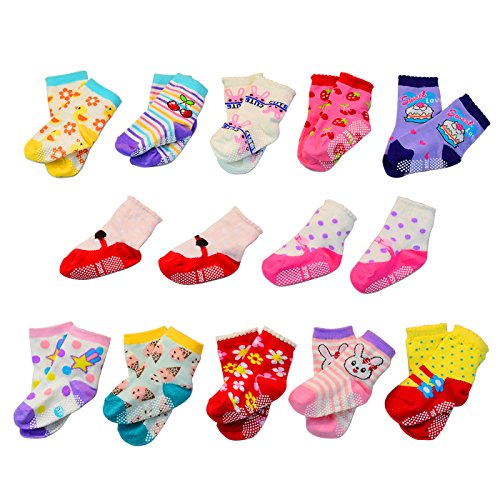 Lystaii 12 Pairs Anti-slip Soft Cotton Baby Kid Socks for 1-3 Years Baby
