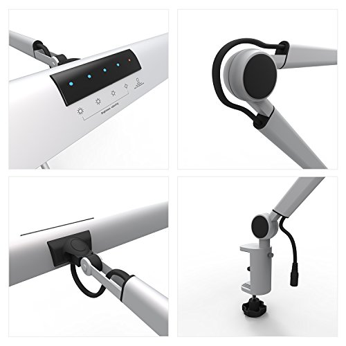 YOUKOYI A509 LED Swing Arm Architect Desk Lamp Clamp, Drafting Table Lamp for Reading/ Working Silver(2 Lighting Modes, 4-level Dimmable, Eye Caring, Touch Control)