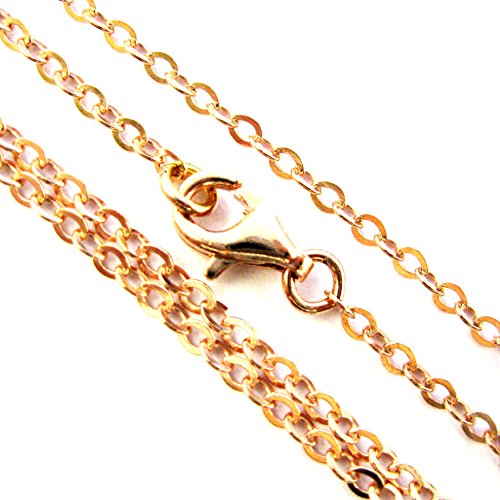 -. Feature : Material: Rose Gold plated over 925 Sterling Silver from Italy. / Shape: Flat chain links. It's ready for pendants. / Chain links are 2.4mm long and 2mm wide. / Thickness: 0.3x0.5mm / Size: Length is available in 16-36 inches.