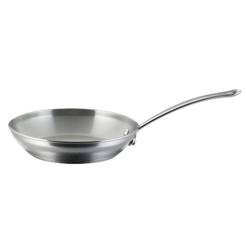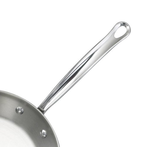 Contemporary flared stainless steel handles are securely riveted to the pan for added durability.