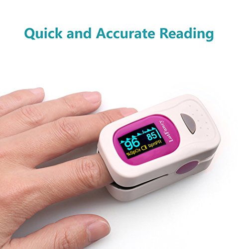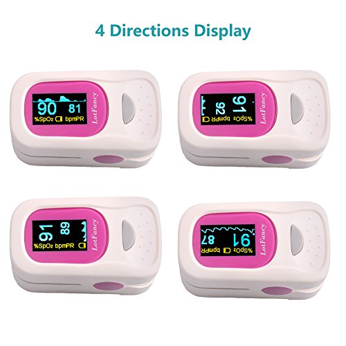 Fingertip Pulse Oximeter by LotFancy - Spo2 Blood Oxygen Saturation Monitor with Lanyard, Large OLED Display, Portable for Sports Use, FDA Approved (Pink)