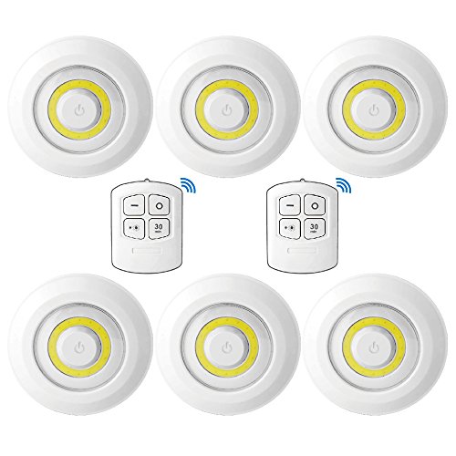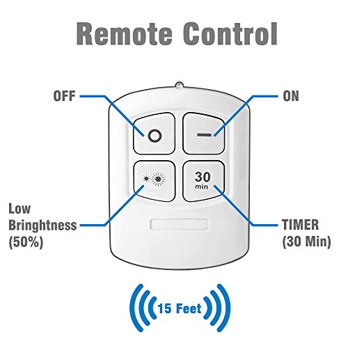 2 Way Control: The Remote control allows you to adjust the brightness in 2 levels and time control to set the light off in 30 minutes wirelessly at up to 10ft distance range. You can also turn the puck light ON/OFF by taping the switch on the lens on the lights.