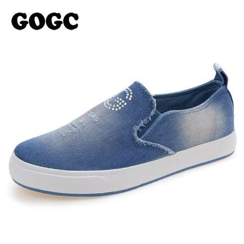 (TNWL)/Women's/Flats/DIRECT FROM USA/Size 8.5 Fashion Denim Shoes with Crystal Breathable Ladies Casual Canvas Shoes Women 2017 Flat...
