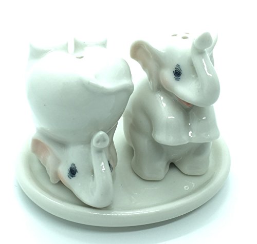 Cute Small Ceramic White Elephants Salt and Pepper Shakers