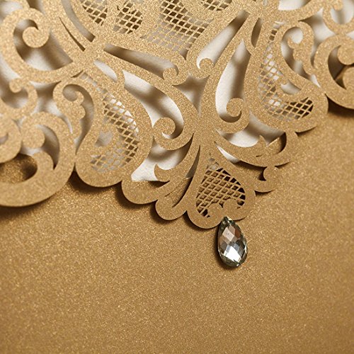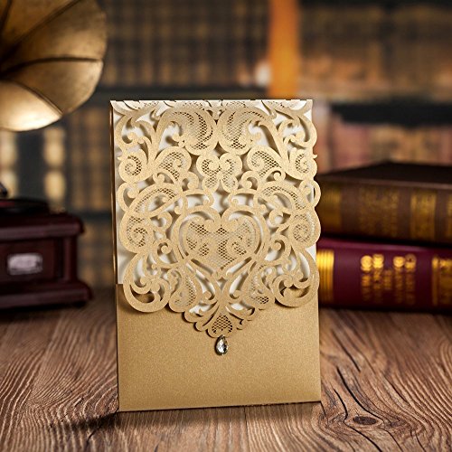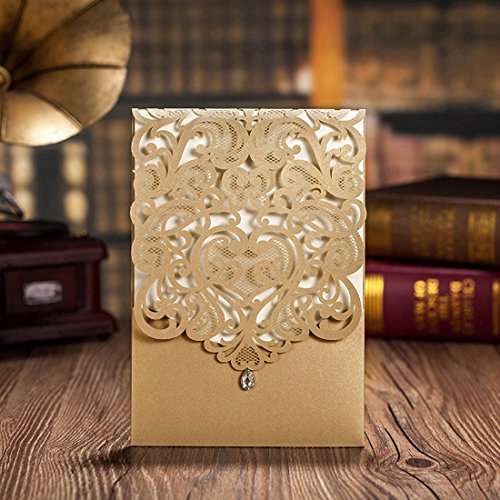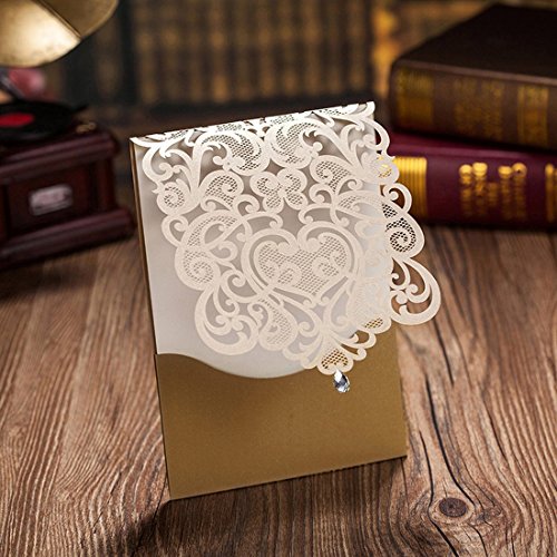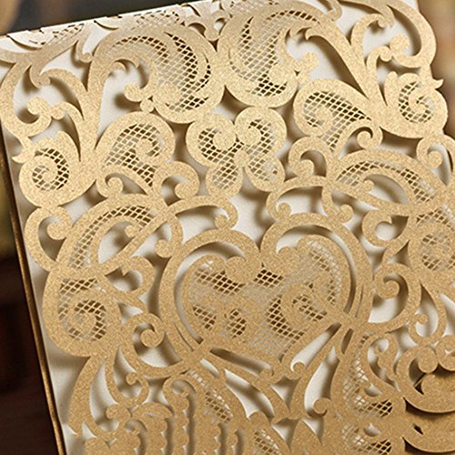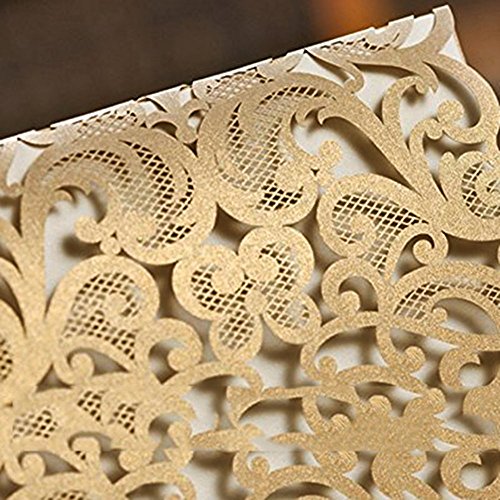 5 x 7.3 inch Ivory laser cut wedding invitation with free ivory envelopes. You can print the invitation with your own design by home printer if you are good at DIY.