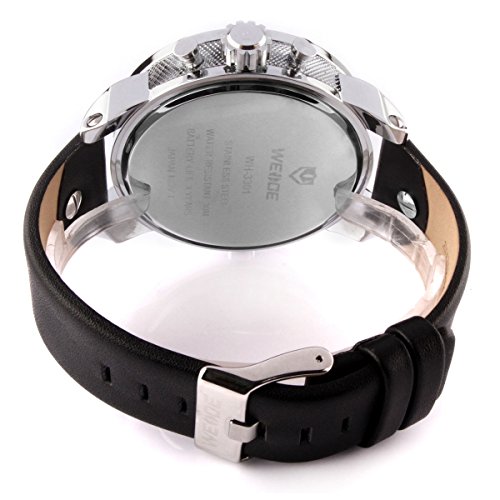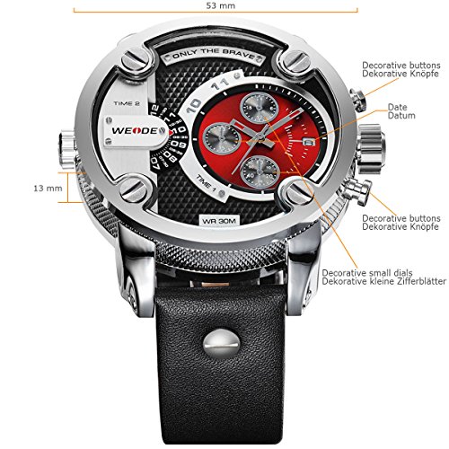 -. Feature : Multi-Funktion: Automatischer Kalender, Zweite Zeitzone / Armband aus Echtleder / XXL Oversized Style / Wasserdichtigkeits-Klassifizierung 3 ATM .geeignet für den normalen täglichen Kontakt mit Wasser, beispielsweise in Kürze Händewaschen / Dekorative Knöpfe und kleine Zifferblätter machen beobachten voller Sinn für Sport und Design.
