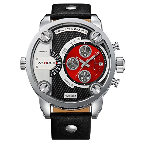-. Title : Alienwork DualTime Quarz Armbanduhr Multi Zeitzonen Quarzuhr Uhr XXL Oversized rot schwarz Leder OS.WH-3301-5