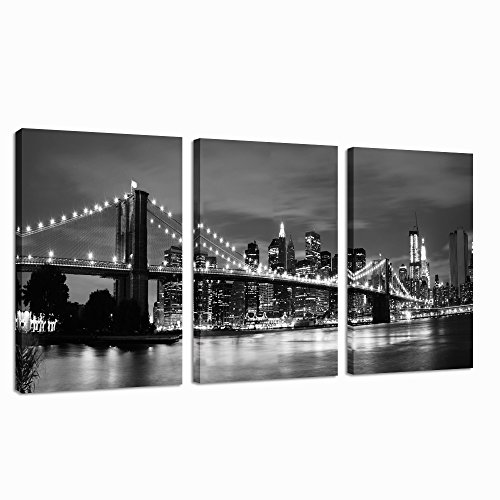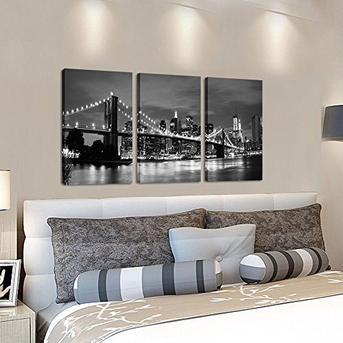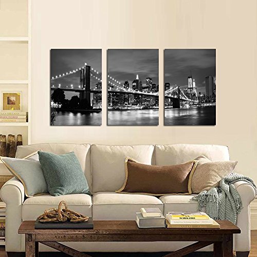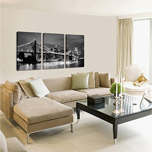 -. Feature : Modern giclee Brooklyn Bridge canvas P.R.Int artwork,New York picture photo P.R.Inted on waterproof canvas / Canvas P.R.Int has a hook already mounted on the wooden frame,come with nails and level,gallery wrapped canvas art.Ready to hang / Size:16x24inchx3pcs(40x60cmx3pcs),2.8cm wood frame / 4 protection corners,shrink wrap,packed in carton box protect wall art during transport / We focus on every detail of production.Black flannel on the back of the frame covered the staples or tacks.Nice choice wall decoration art P.R.Int for home,living room,bedroom,kitchen,dinning room,office,office,hotel,bar etc