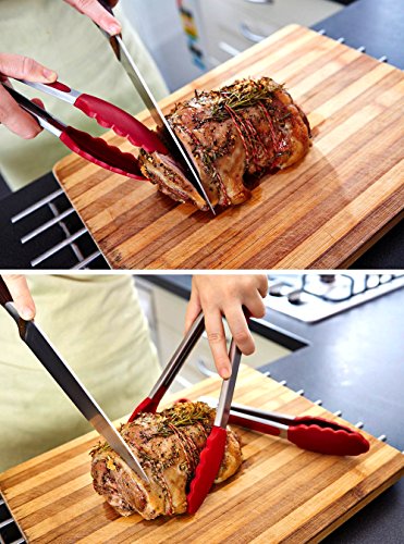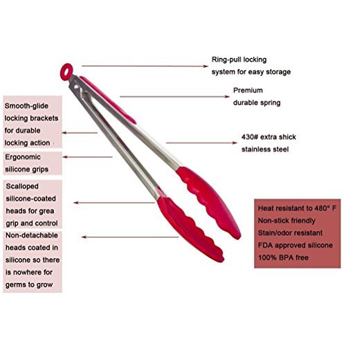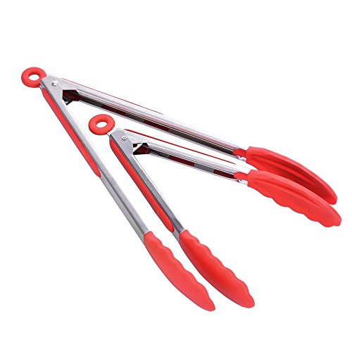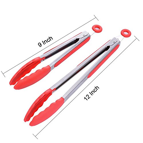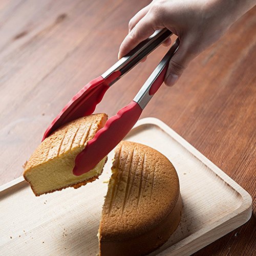 AMAZING GRIP & NON-STICK FRIENDLY: With scalloped steel heads coated in silicone, and silicone heads are firm and angled to offer amazing grip and control. Ideal Kitchen Tongs for a variety of foods, including serving and cooking foods such as salad, BBQ,grilling meat, foods, pastas, fruits and much more.