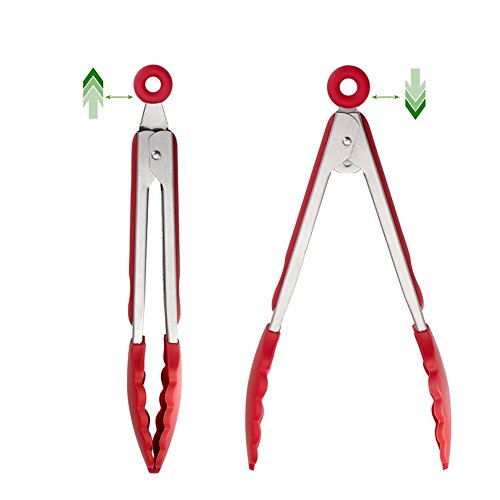 TONGS WITH LOCKING DESIGNING: 9" & 12" silicone kitchen tongs equipped with a new Pull-Ring and soft silicone heads. The handles have soft ergonomic grips, and the ring pull lock means easy storage. Plus DISHWASH SAFE!