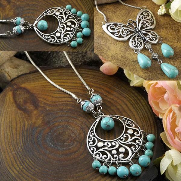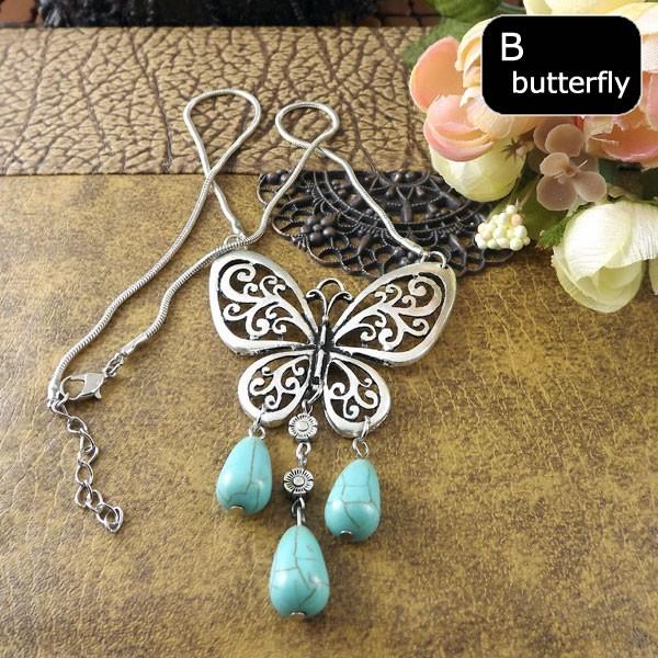 | エスニック ターコイズビーズ サークル バタフライ ネックレス レディース チェーンネックレス 45cm 銀古美 【エスニック ネックレス アクセサリー レディース アクセ アジアン チェーンネックレス triangle ACCESSORY Necklace】 | |
