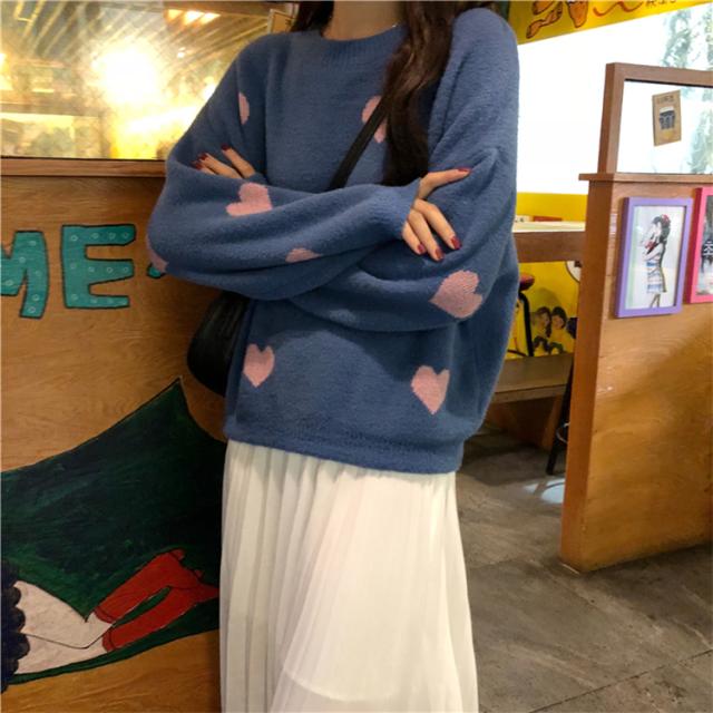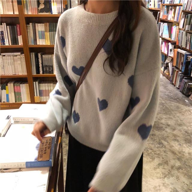 ライトブルーとブルーの2色のふんわり柔らかセーターを着て、今年の冬もキュートに飾る♪