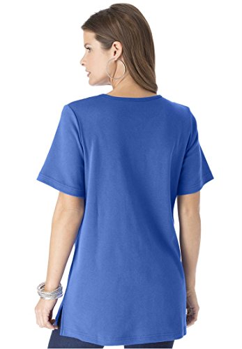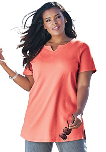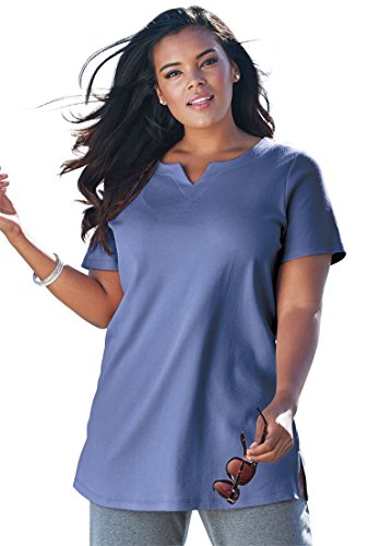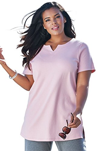 Studio : Roamans Publisher : Roamans Binding : Apparel Product Description The basic slimming plus size tunic gets an update with our notch neck design that flatters. relaxed tee silhouette is effortless and graceful as it is fashionably loose and gracefully oversized to fit you flawlesslly notch neck enhances bustline illuminating your alluring figure as it is bra friendly and gives you the coverage you want falling to about 32" this tunic hits you below the hips for full coverage short sleeves provide full coverage while keeping you cool side slits at hem allow you to move effortlessly solid material offers a sleek silhouette cotton/polyester machine wash imported perfect length for jeans or our matching knit capris Women's tops, tunics notch neck tunic in solid colors, sizes M (14W-16W), L (18W-20W), 1X (22W-24W), 2X (26W-28W), 3X (30W-32W), 4X (34W-36W), 5X (38W-40W), 6X (42W-44W)In Style Now!A flattering fit that never goes out of style. You will feel effortlessly chic in this top paired with your favorite glamorous jewelry. 0