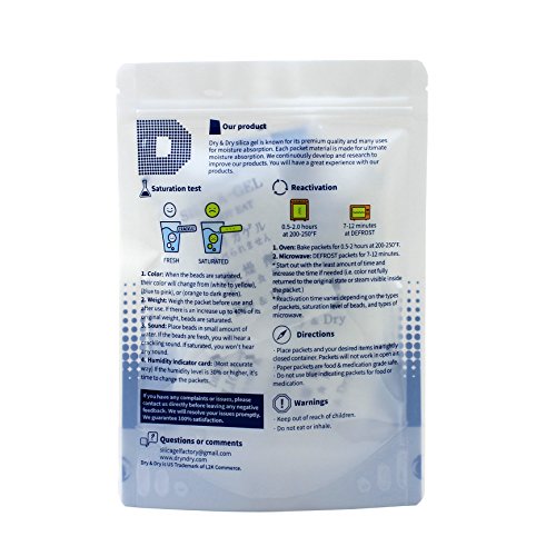 Packets can be Reactivated by Heating in an Oven for 0.5-2.0 hours at 200-250 F Or Microwave for 10 Minutes at DEFROST. - Packets are stored in Resealable Self-Standing High Quality Bag for Easy Storage and Use(Air Tight Sealing & Sturdy Bag for Moisture Control).