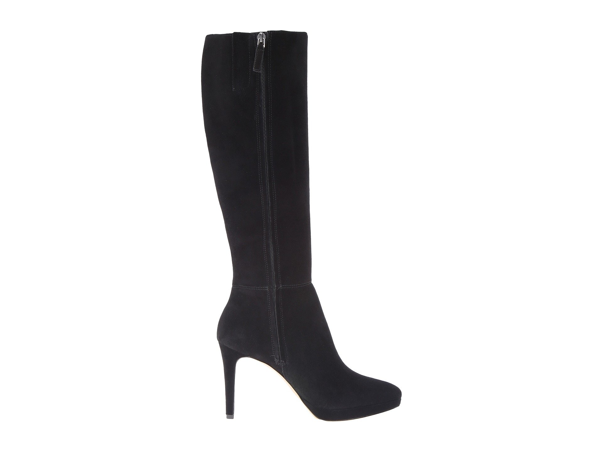 | Product Information SKU: #8782308Perfect any ensemble in the timeless and versatile Nine West? Okena boot.Leather or suede upper.Side zippered closure.Almond toe.Man-made lining.Padded footbed.Wrapped platform and heel.Man-made sole.Imported.Product measurements were taken using size 9, width M. Please note that measurements may vary by size.Weight of footwear is based on a single item, not a pair.Measurements: Heel Height: 4 in Weight: 1 lb 2 oz Circumference: 14 3?4 in Shaft: 17 1?2 in Platform Height: 3?4 in |