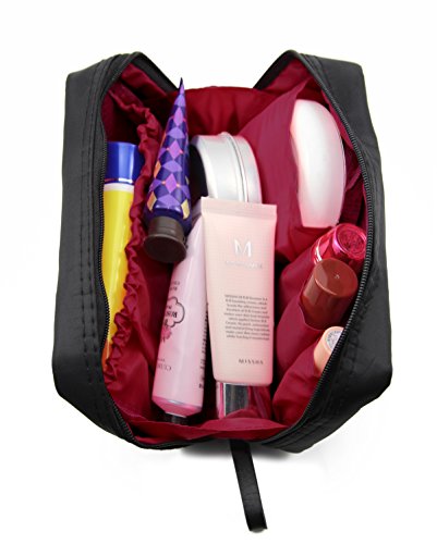 Admirable Idea Women's Small Makeup Organizer Bag for Traveling Square Nylon Cosmetic Pouch Kits,black