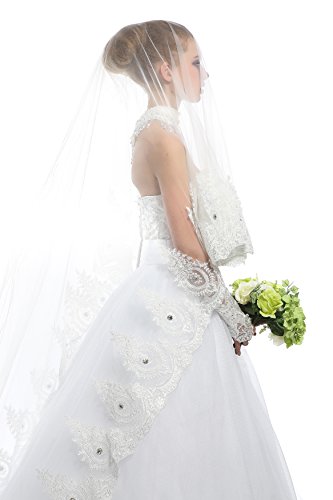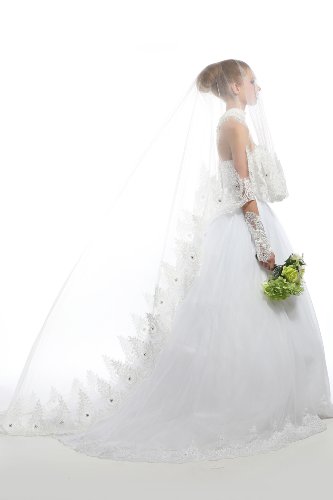 Title : Passat Ivory 1Tier 3M French Lace With Diamonds Cathedral Blusher Face Wedding Veil 08