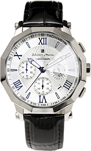 [살바토르메라]Salvatore Marra 손목시계 크로노그래프 컷 유리 가죽 벨트 맨즈 SM15112 블랙 실버 [병행수입품]