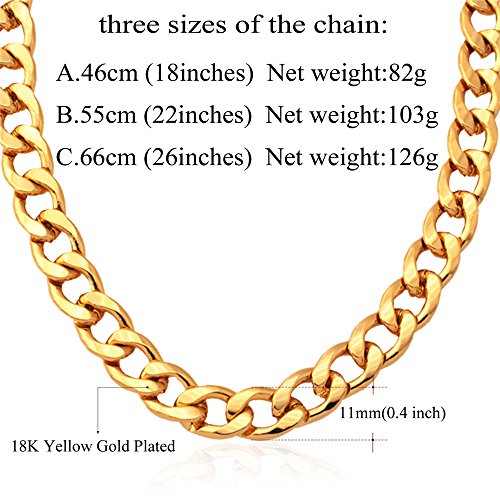 -. Title : U7 Hip Hop Chain 11MM Wide Curb Cuban Chain Necklace for Men