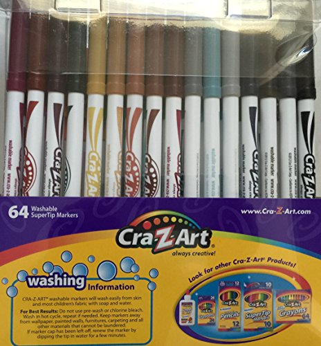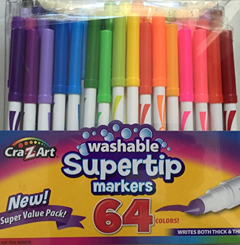 - Cra-Z-Art Washable Supertips markers are perfect for drawing, coloring and writing. Will not bleed through paper. Portable, reusable clear pouch 64 color variety. This pack contains 64 markers, Each marker has a durable tip, can create a thick or thin line, and won't bleed through paper.