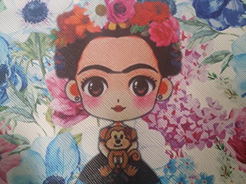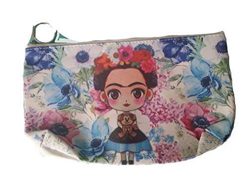 Frida Cosmetic Bag (Cartoon Frida with Flower Crown and Monkey (White/Blue/Lavender/Pink))