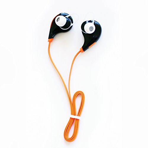 Beihont BH307 Wireless SweatProof Sport Bluetooth Earbud Headphones With Microphone. White earbud with Orange connecting wire.