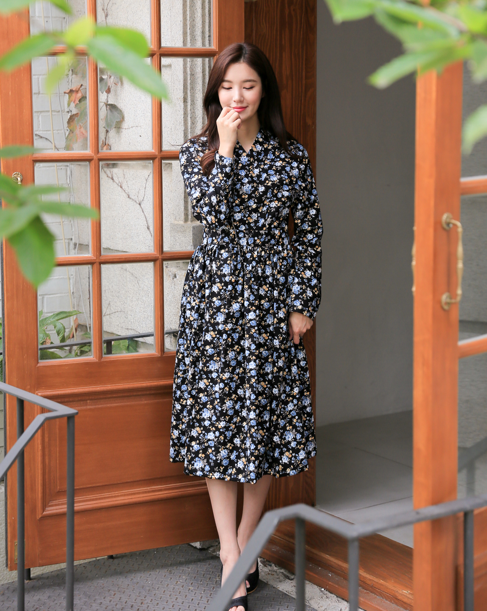원피스의 블랙 바탕과 장미꽃패턴의 색감이 그윽하니 고풍스러움과 세련된 느낌을 준답니다.