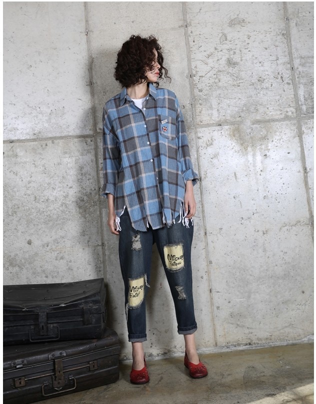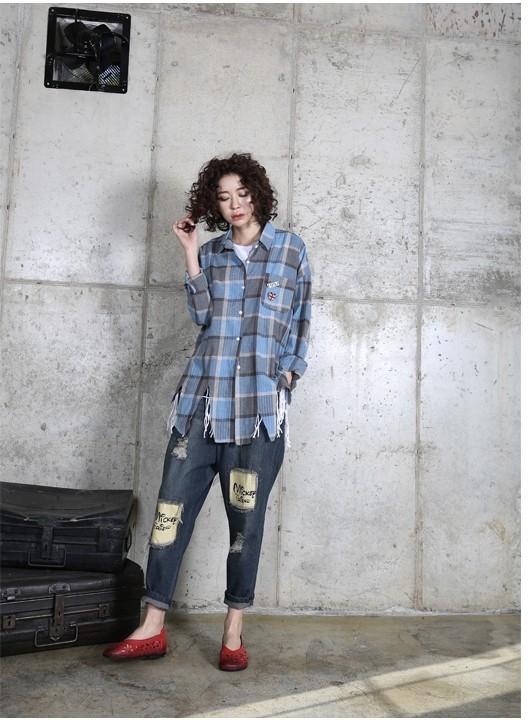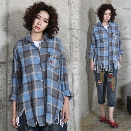 商品名:シャツ レディース ブラウス チェック カジュアル 春 2017 モード系 個性的 40代 ファッション