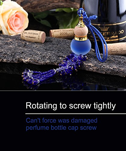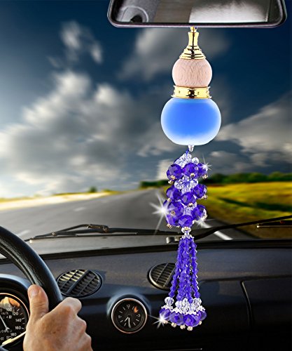Angela_max Car Ornament Home Decoration Crystal Glass Gourd Perfume Bottle Automotive Rearview Mirror Blessing Safe Journey Symbol Tassel Beads Perfume Car Interior Pendant (blue)-Perfume Not in