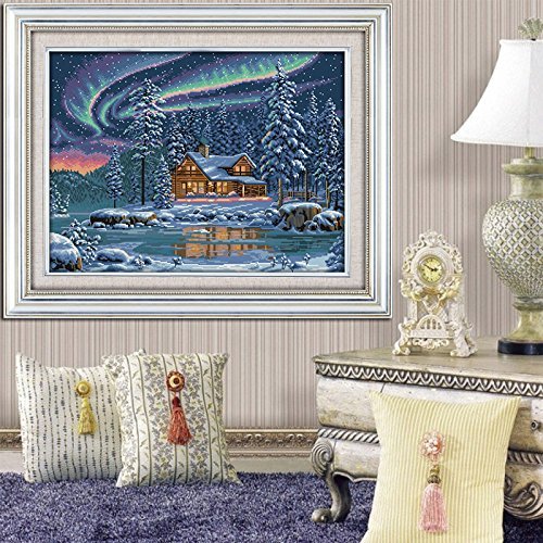 The aurora borealis Canvas DMC Counted DIY Cross Stitch Kits Cross-stitch set Embroidery Needlework 14CT Counted-F765