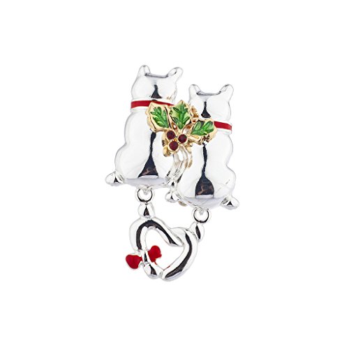 -. Feature : Bring in the holiday season with this festive brooch / Double cat with interlocking tails with mistletoe In Silvertone finish / Measures: 2" / Designed by Lux Accessories, a world leader in fashion accessories / Backed By A 30-Day 100% Satisfaction Guarantee