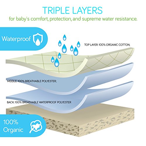 Pexils Premium Quilted Waterproof Crib Mattress Pad Protector Fitted - For Standard Size Crib
