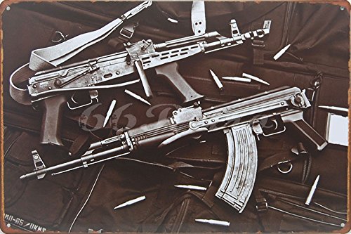 1950 AK-47 Rifle, Metal Tin Sign, Wall Decorative Sign, Size 8" X 12"