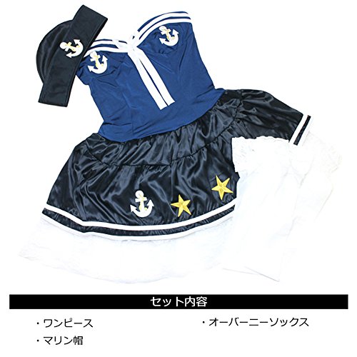 원본상품명: 水兵 ガ?ル マリン コスチュ?ム 3点 セット ワンピ?ス ドレス 帽子 ニ?ハイ オ?バ?ニ? ソックス 靴下 レディ?ス 大人 ハロウィン Halloween コスプレ 衣? ?? 一式 フリ?