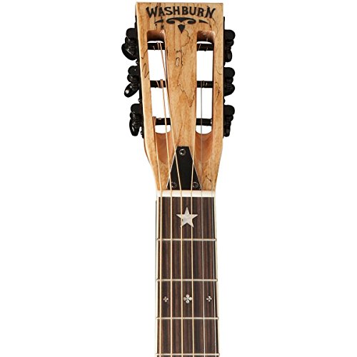 Studio : Washburn Publisher : Washburn Product Description The R360SMK parlor guitar is based on designs Washburn used over 100 years ago and features a biscuit resonator cone. It has the look and feel of a guitar that would have been made in the early 20th century and played well since. It features a spalted maple top and sides with rosewood sides and a mahogany neck. The old-style slotted headstock features distressed classical-style tuners and classy pearl inlaid Washburn logo and design. The rosewood fingerboard showcases period correct traditional pearl inlays and has a 48mm nut width to facilitate fingerpick or slide styles. A custom cover plate with antique bronze finish matches the tailpiece and tuner hardware. Mirror image f holes adorn both sides of the fingerboard extension.With the current popularity of folk and Americana music styles, the R360K brings a unique voice to the genre, thanks to its smaller body. Players looking to add new colors to their tonal palate via slide or fingerstyle will find the R360K to be the ideal instrument. 0
