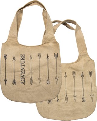 Product DescriptionTan cotton canvas tote printed with an arrow design and the word "Adventure" // Primitive design // 18in. x 19in.0